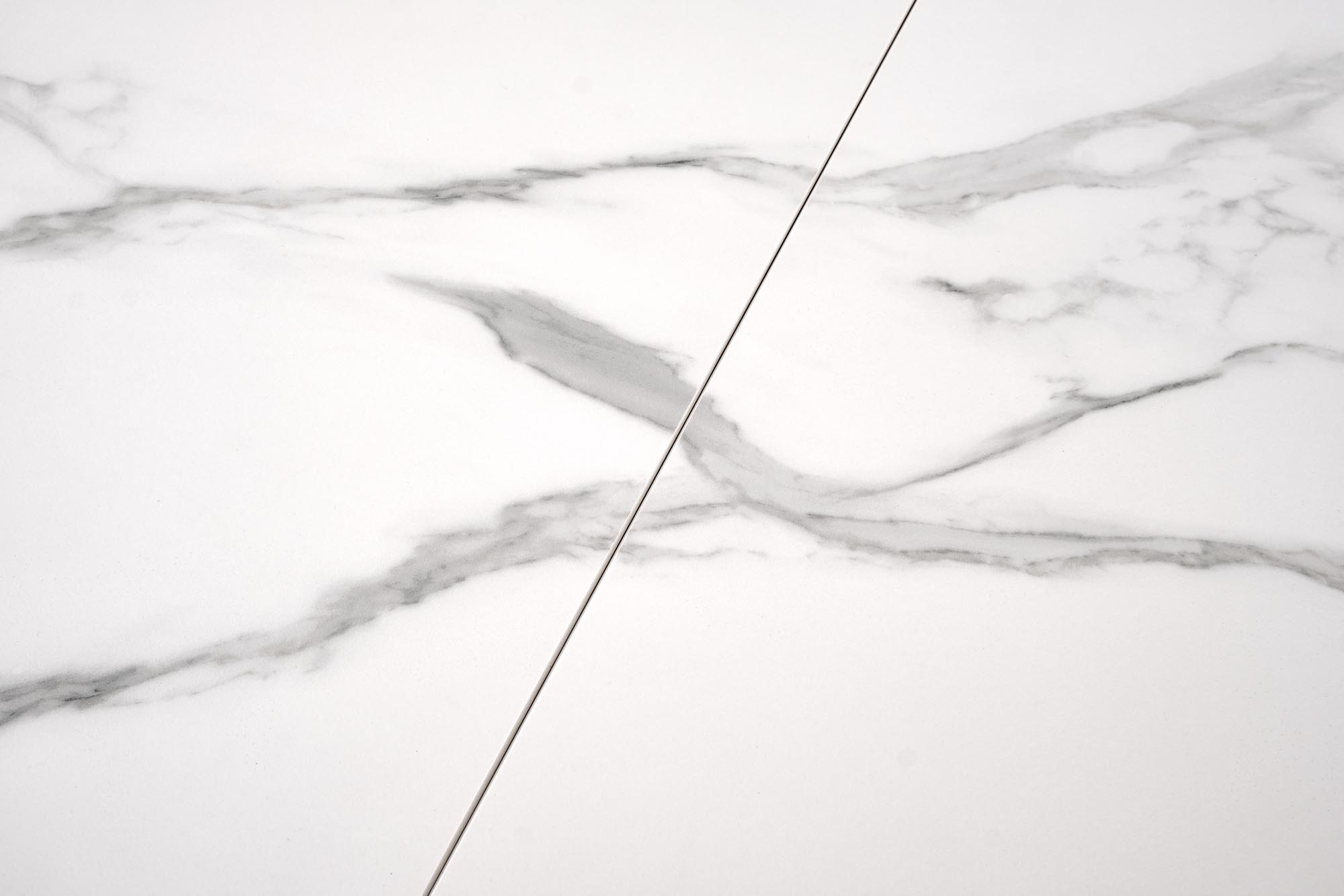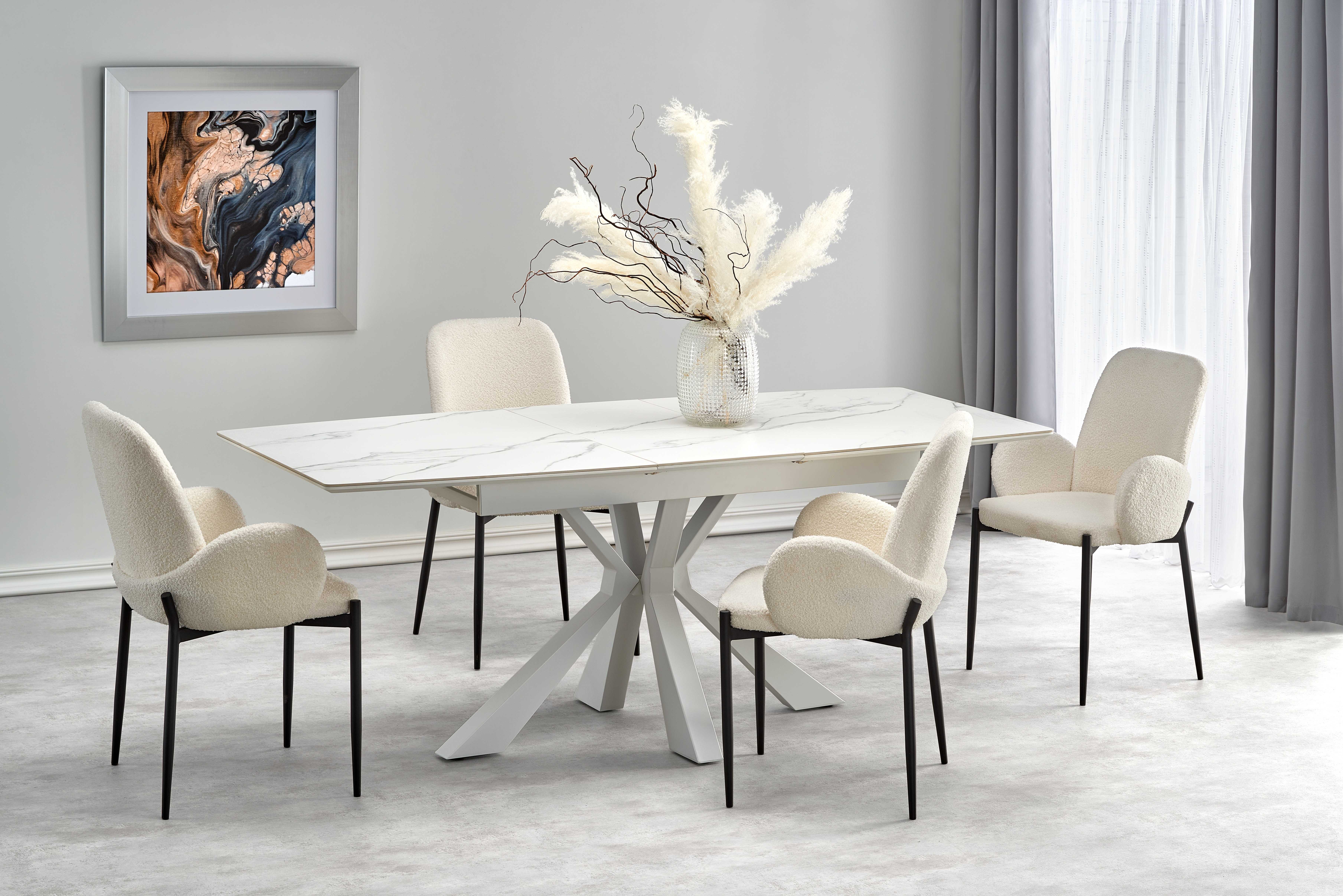 mõõdud: 160-200/89/78 cm, materjal: paagutatud kivi / lakitud MDF / pulbervärvitud teras, värvus: pealispind – valge marmor, jalad – valge