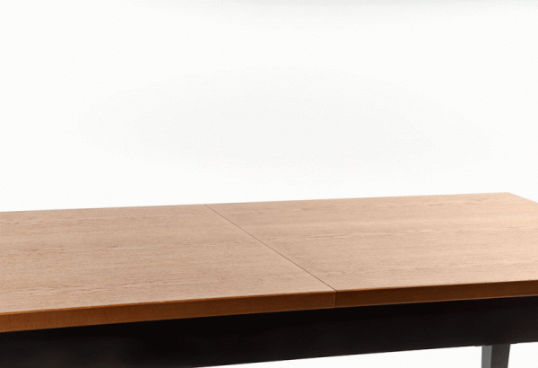 pikenduslaud, mõõdud: 160-240/90/76 cm, materjal: pealispind – mööbliplaat + naturaalne tamme vaneer, jalad – täispöök, värvus: pealispind – tume tamm, jalad – must