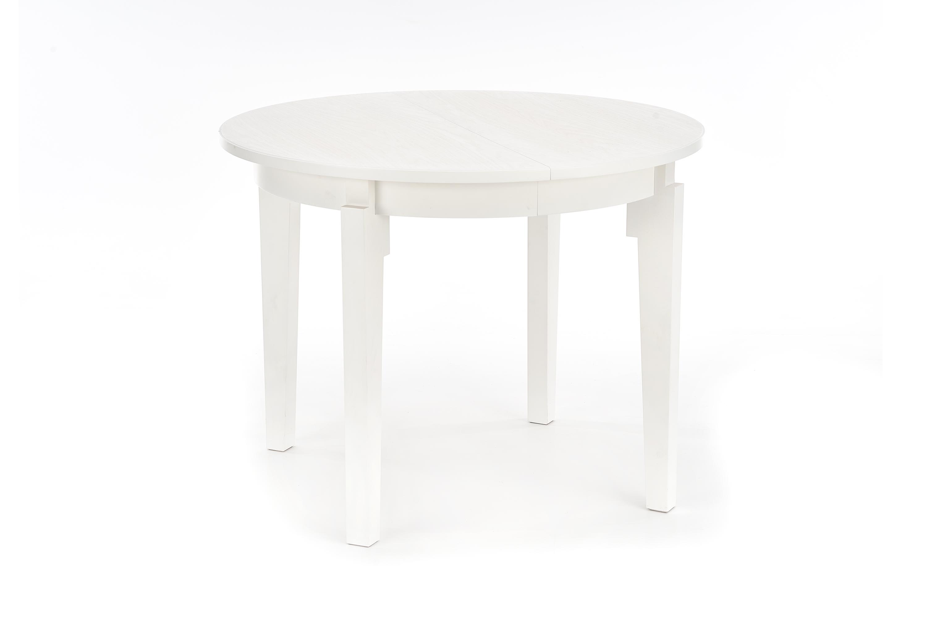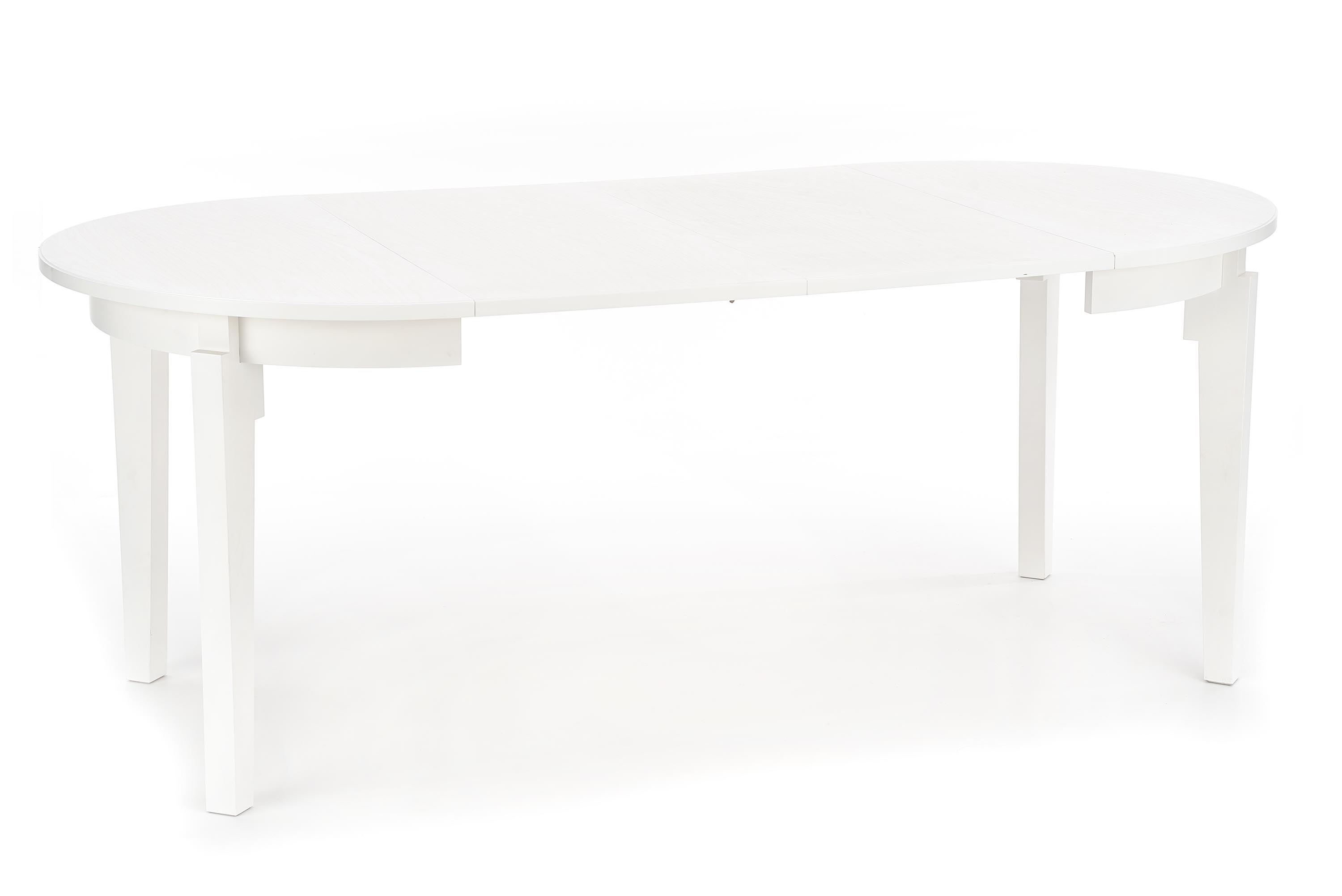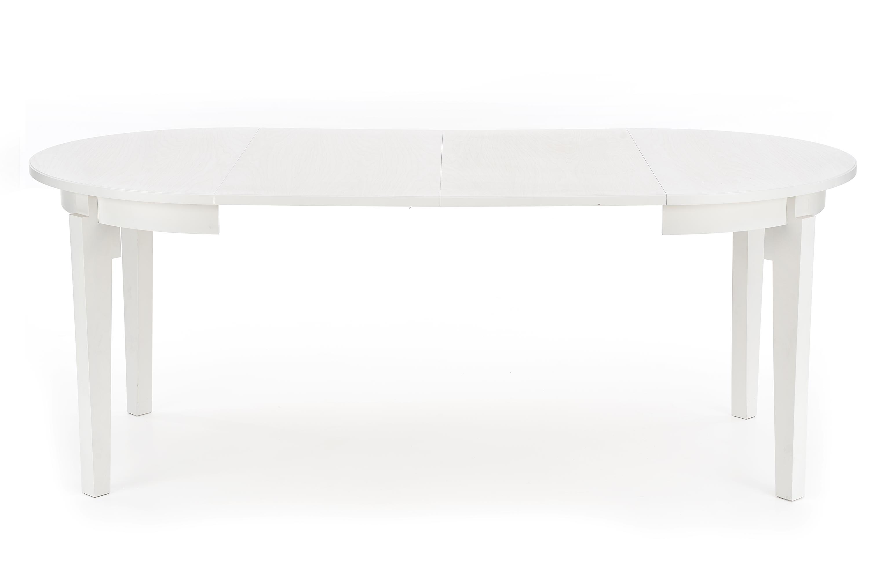 mõõdud: 100÷200/100/77 cm, pikenduslaud, materjal: MDF + naturaalne tamme spoon / täispuit – pöök, värvus: pealispind – valge, jalad – valge