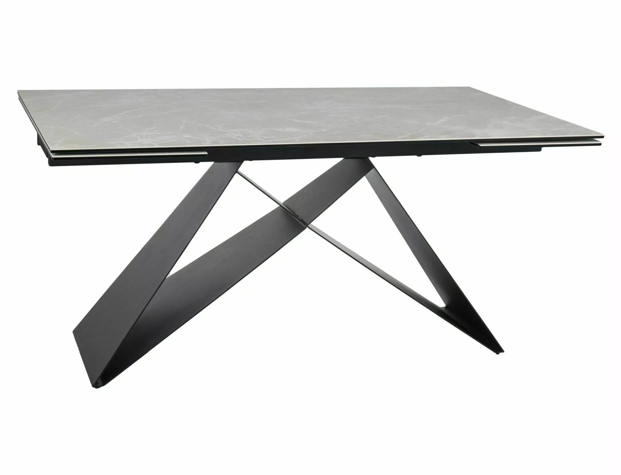 Pikendatav laud, pealispind: karastatud klaas + DIAMOND CREAM keraamika, raam: metall, värvus: kreemjas matt / must matt.