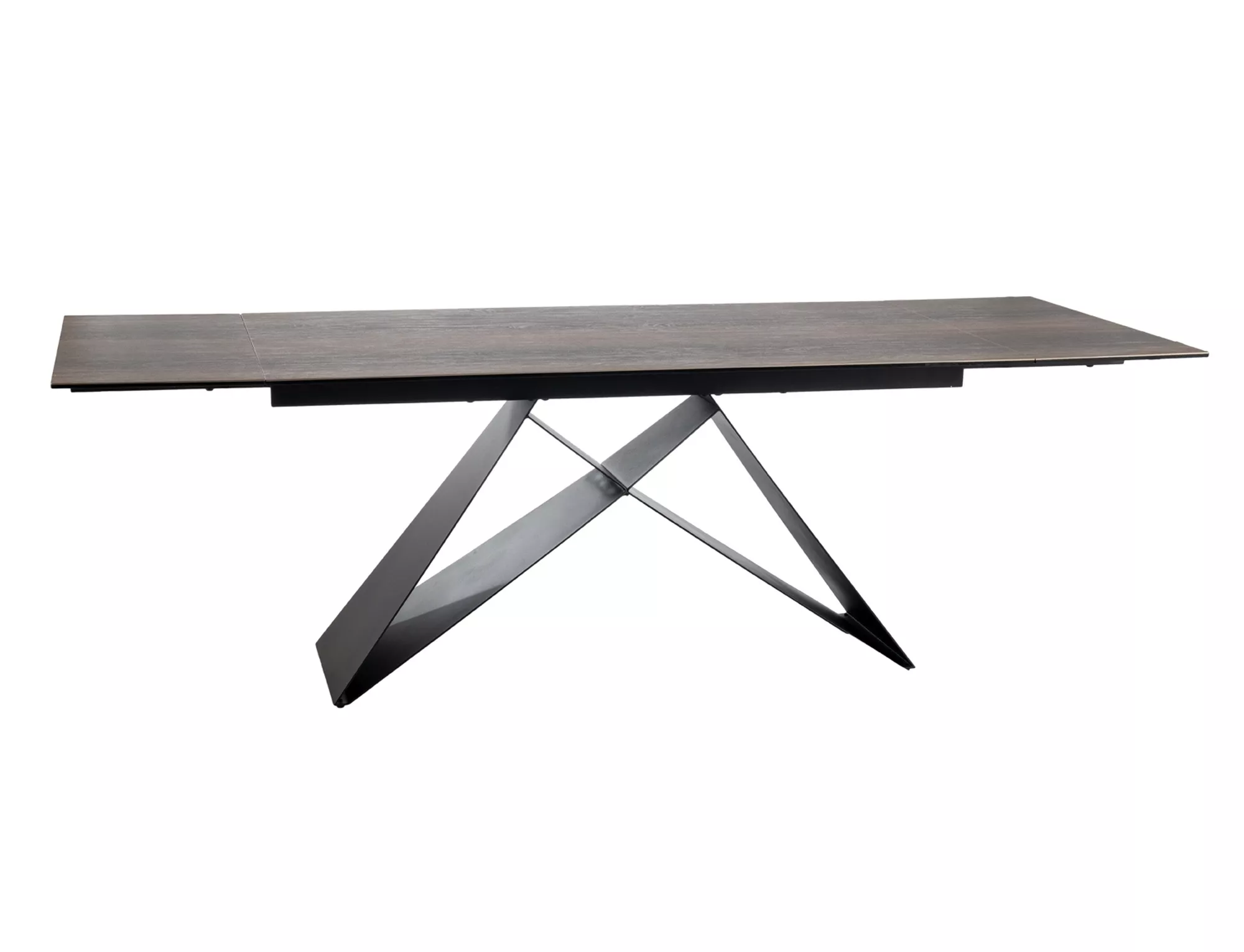 Pikendatav laud, pealispind: karastatud klaas + Hispaania keraamika LEGNO, puiduefekt, raam: metall, värvus: pruun / mattmust.
