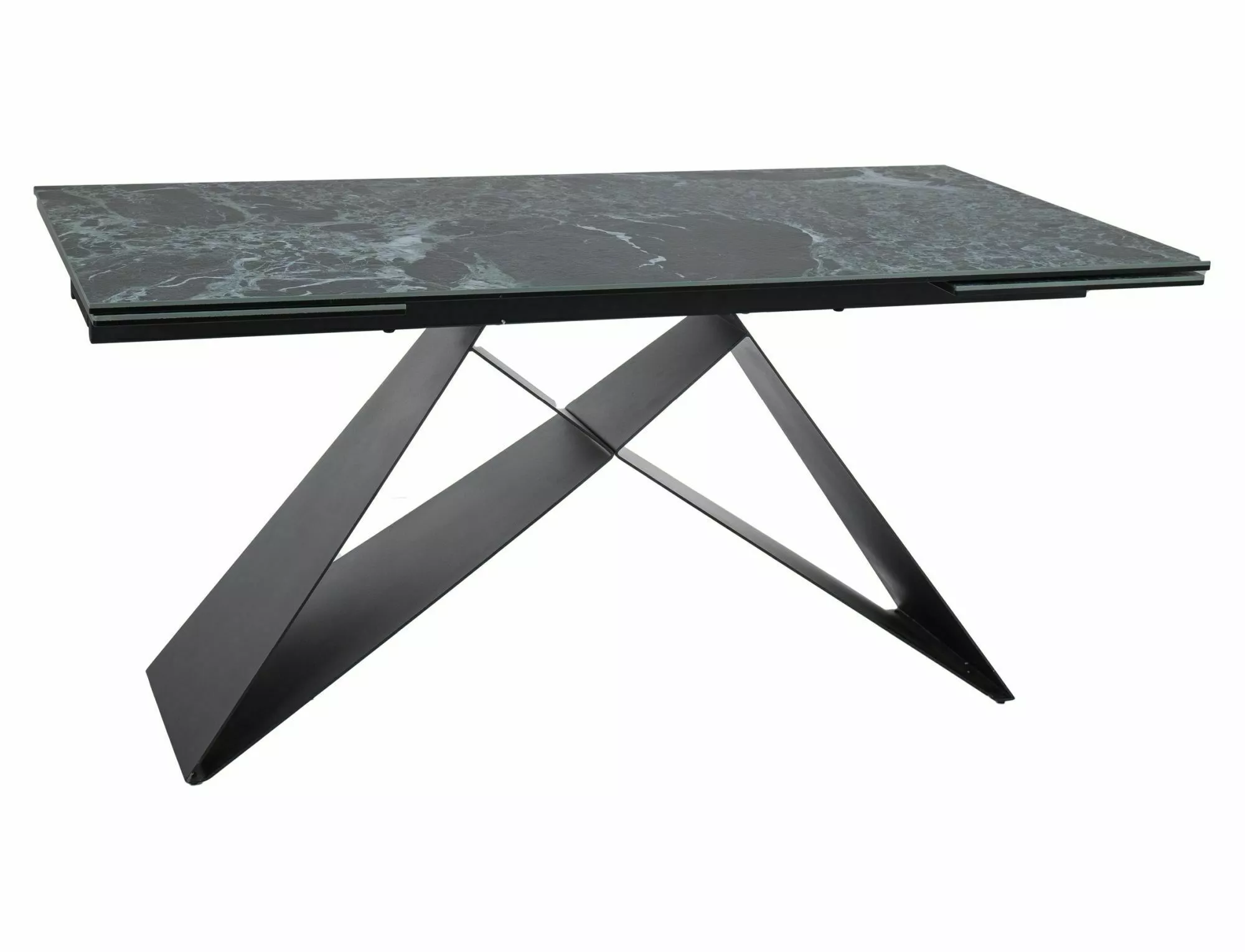 Pikendatav laud, pealispind: karastatud klaas + VERDE ALPI keraamika, raam: metall, värvus: matt mereroheline / mattmust.
