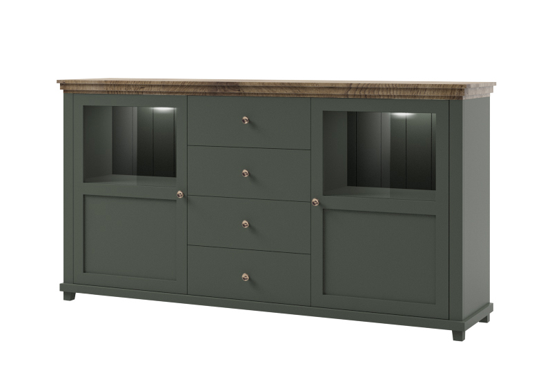 - Klassikalises stiilis kummut/vitriin on valmistatud lamineeritud mööbliplaadist ning MDF-ist