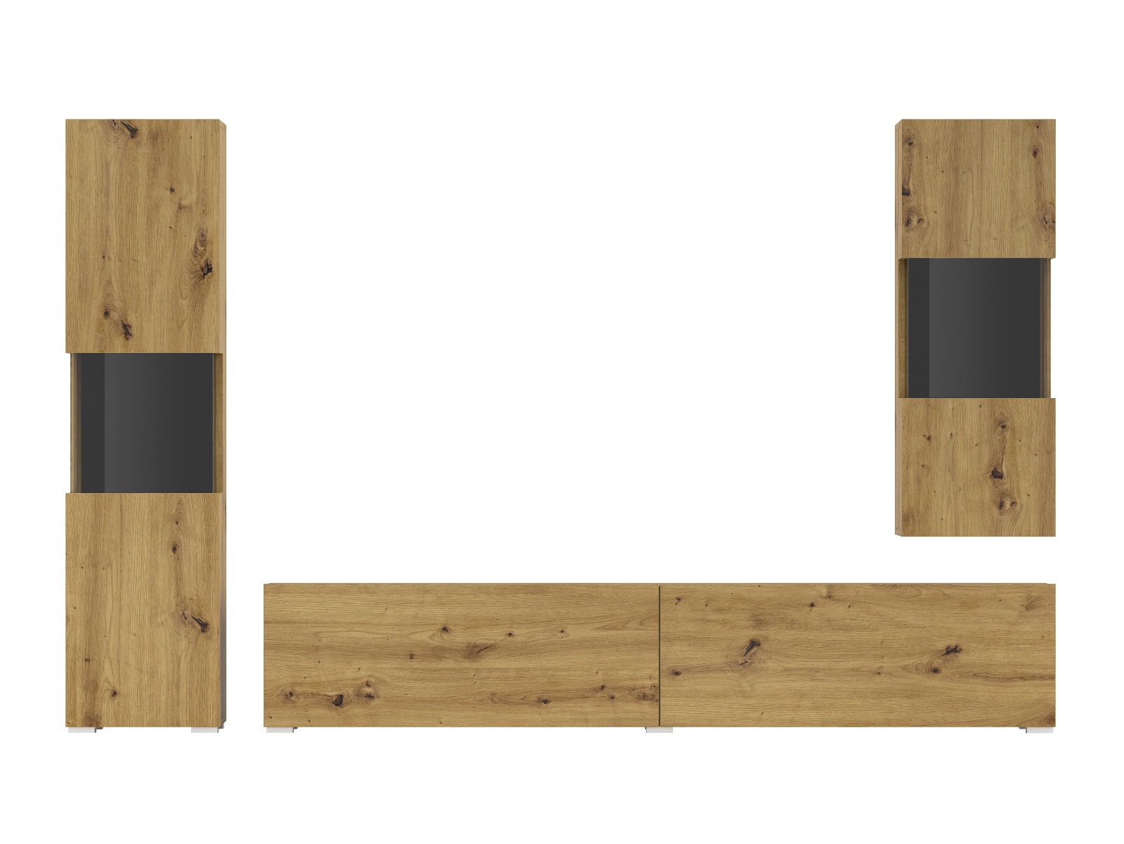 - Komplekti kuuluvad 2 vitriinkappi ja tv-alus