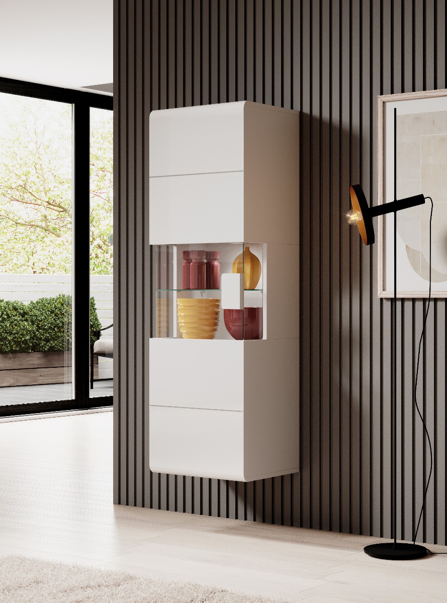 - Vitriinkapp on valmistatud kõrgkvaliteetsest lamineeritud mööbliplaadist ning MDF-ist