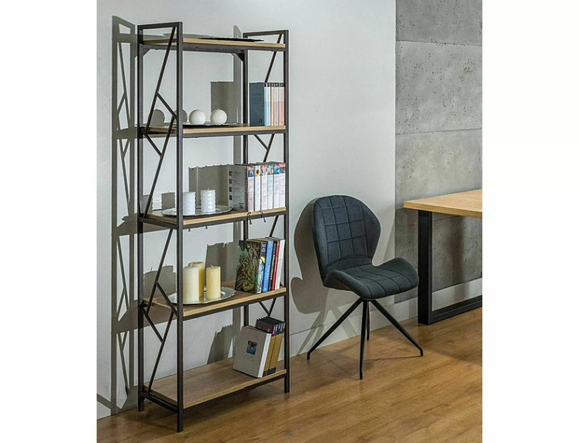 Raamaturiiul, riiulid: MDF, värvus: tamm, raam: metall, värvus: tumepruun.