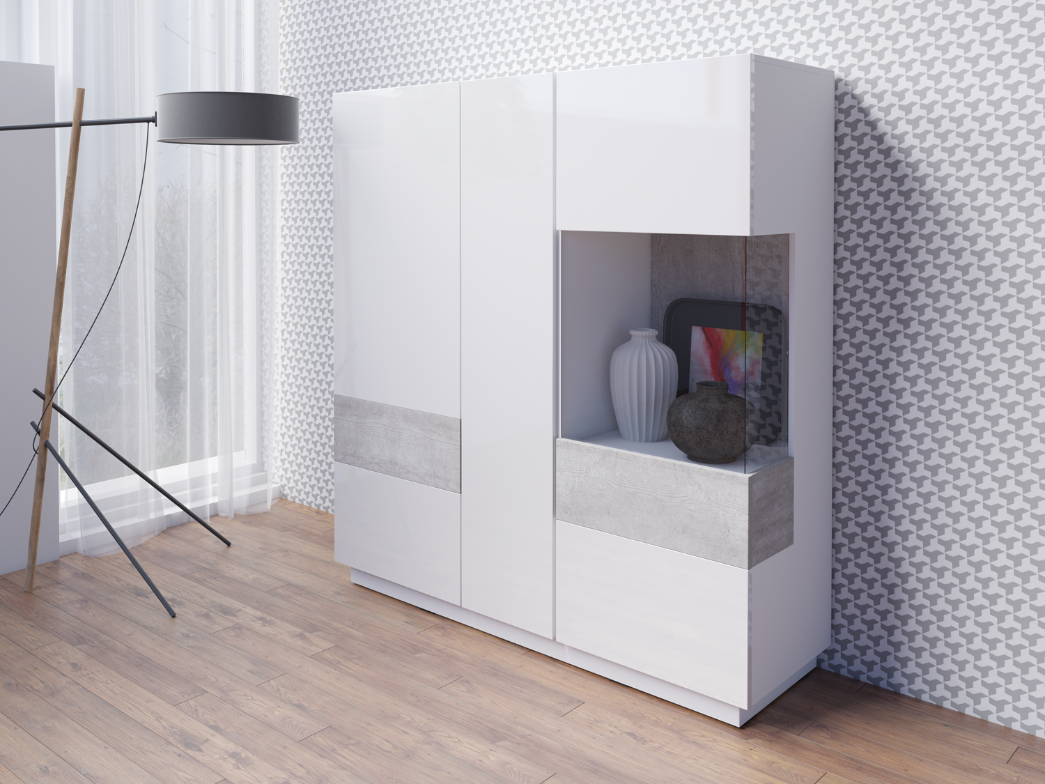 VITRIINKAPP SILKE 2484GY46 VALGE/BETOON 130 cm