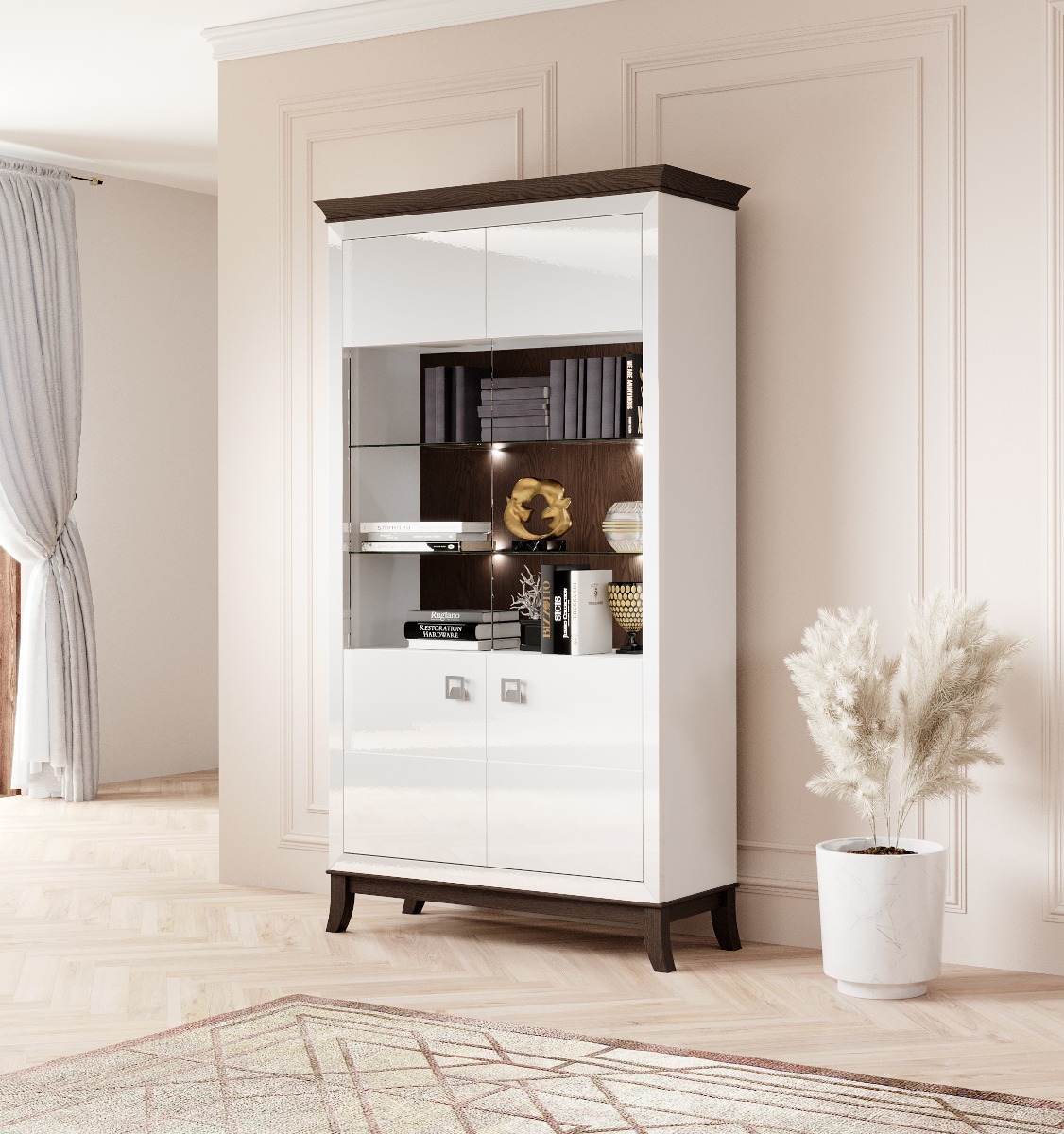 - Luksusliku välimusega 2-ukseline vitriinkapp on valmistatud lamineeritud mööbliplaadist