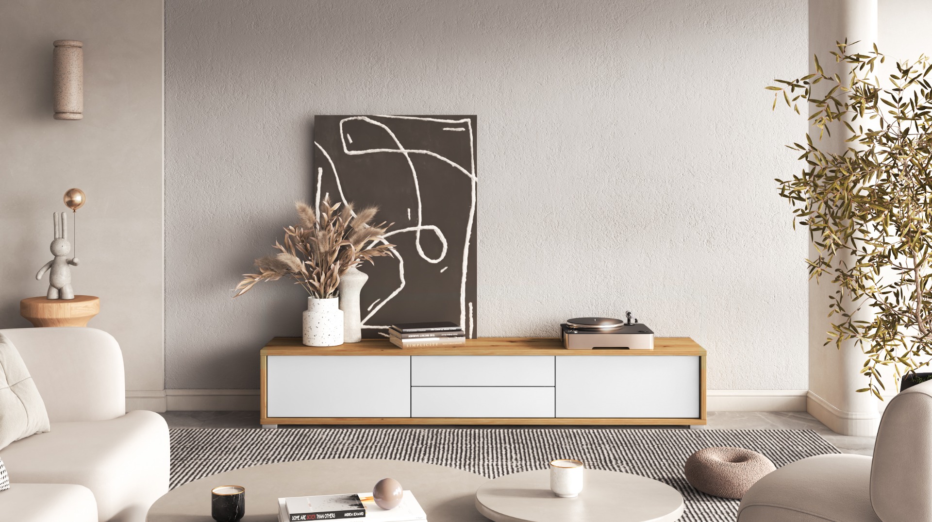 Tv-alus FRIDA 180 cm 249AMT39 tamm artisan/valge