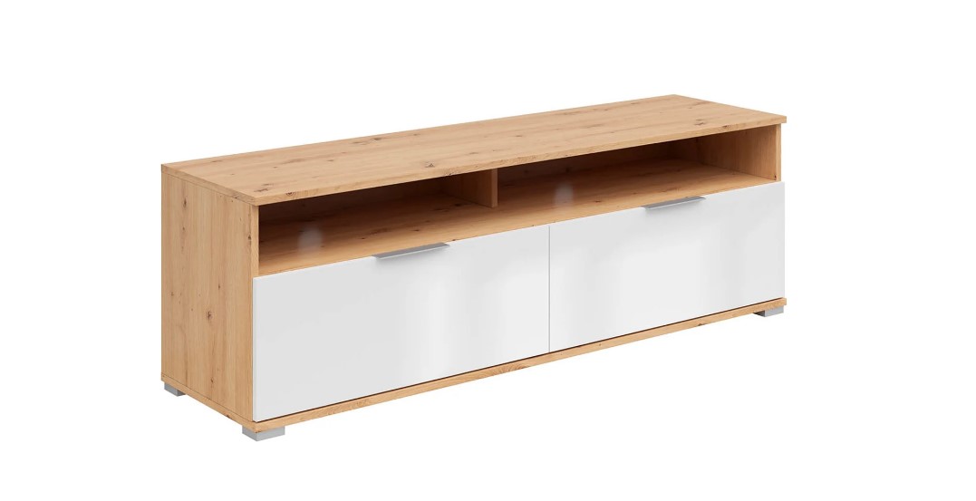 TV-alus ZELE RTV2S tamm artisan/valge kõrgläige 135 cm