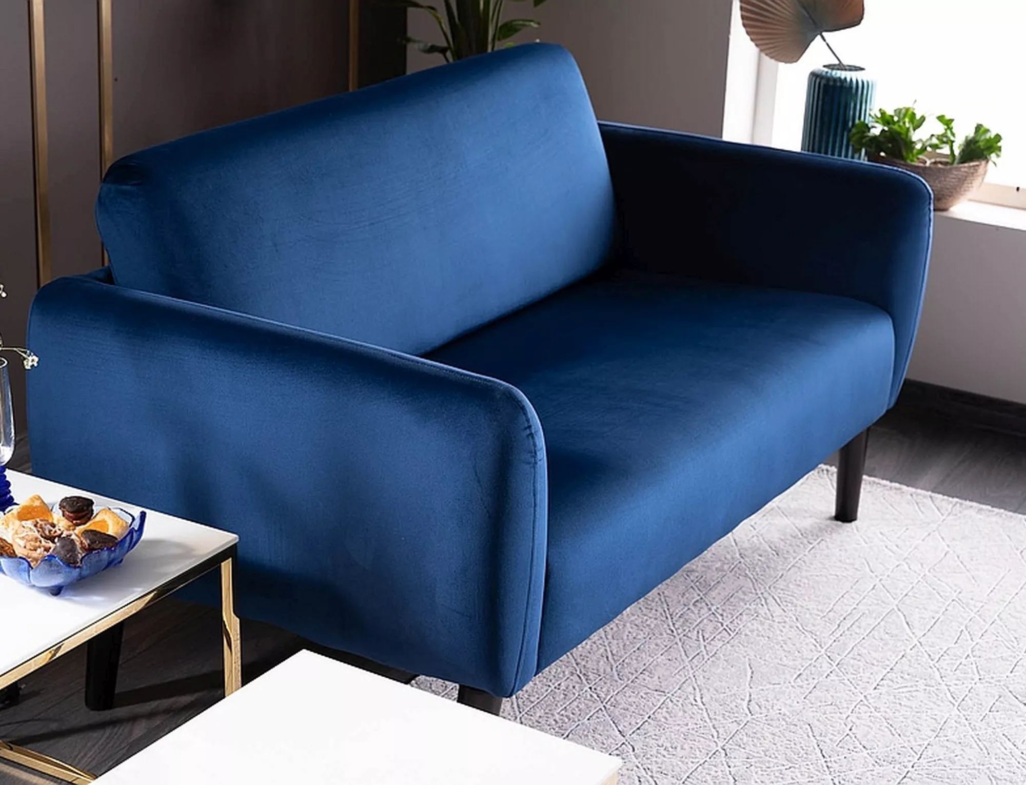 Diivan, sametkangas, värvus: vastavalt Bluvel 86 näidisele – tumesinine, puit, värvus: wenge.