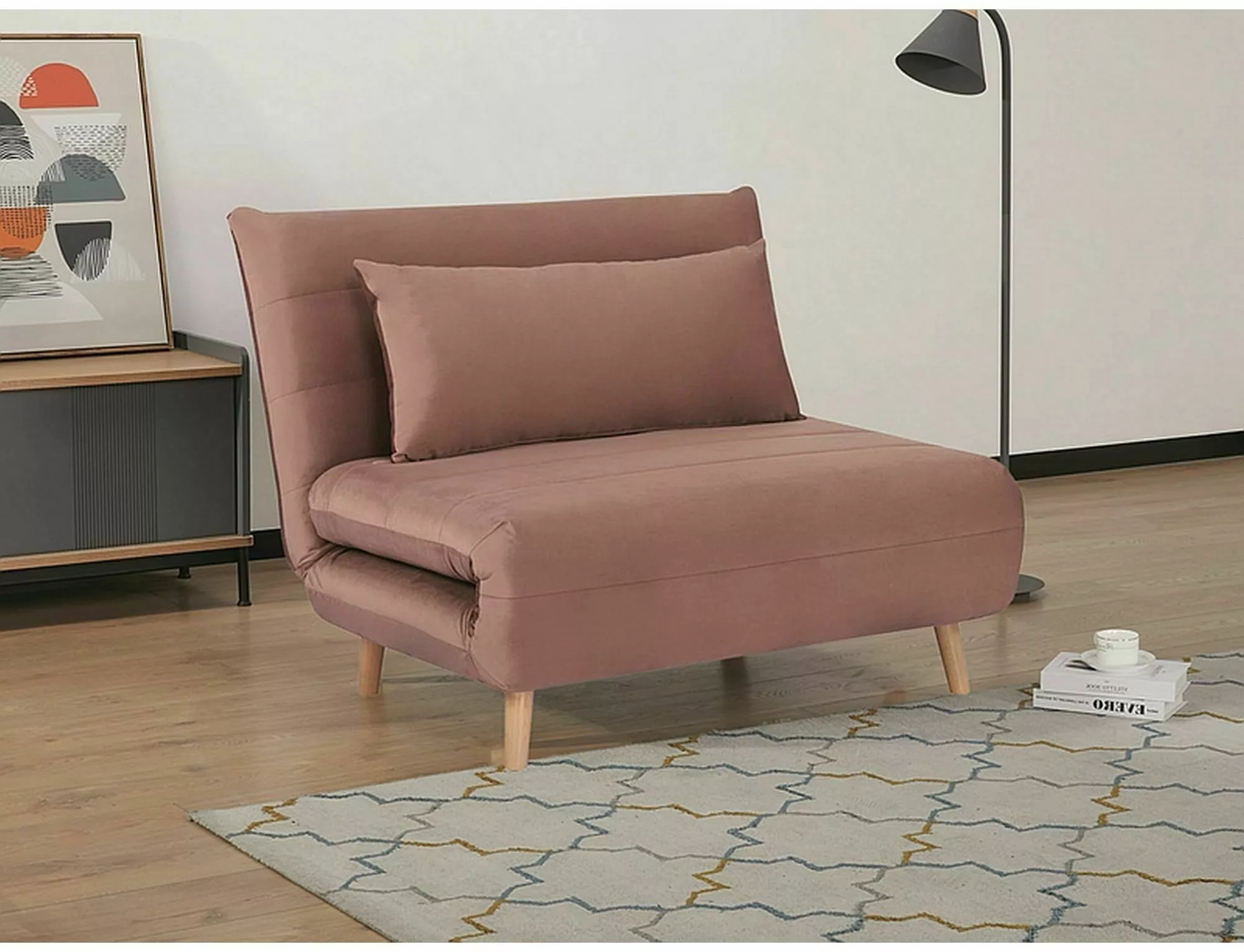 Lamav tugitool: sametkangas, antiikroosa polster. 182 / puit, värvus: pöök.