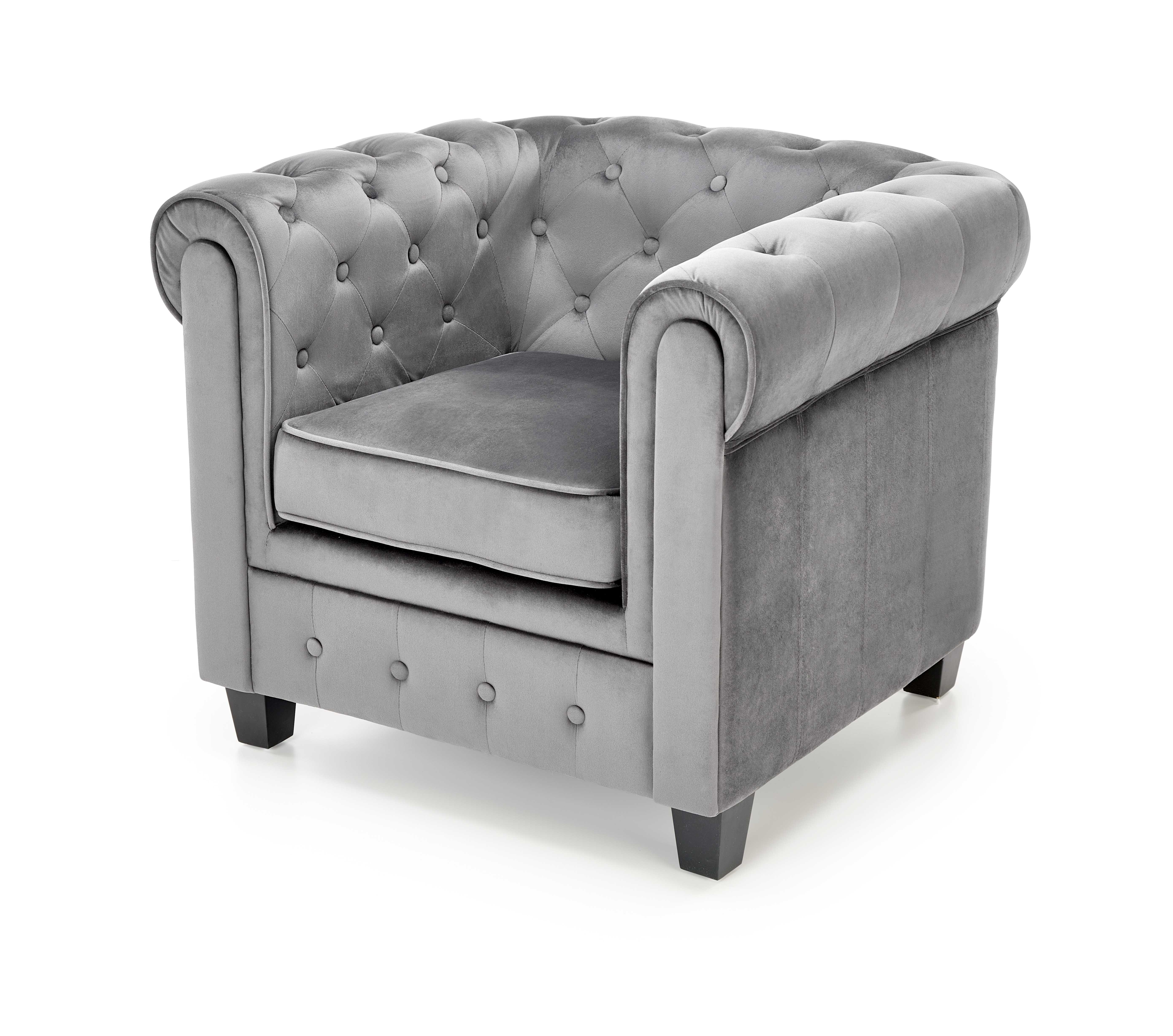 mõõdud: 84/75/73/48 cm, materjal: sametriie / täispuit, värvid: polster – hall HLR 21, jalad – must