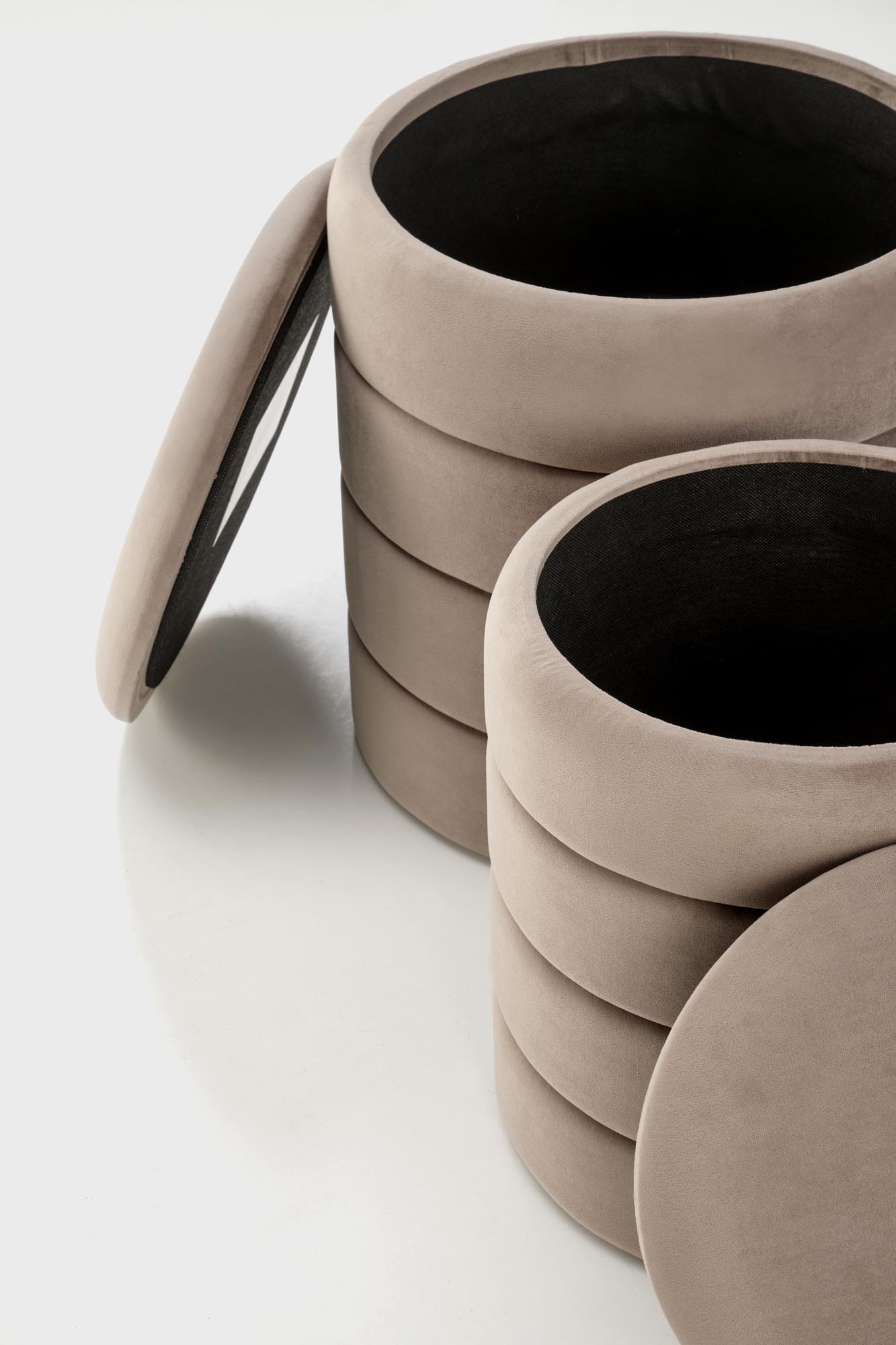 mõõdud: 40/44 cm ja 33/39 cm; kaheosaline komplekt hoiufunktsiooniga, materjal: riie – samet, värvus beež