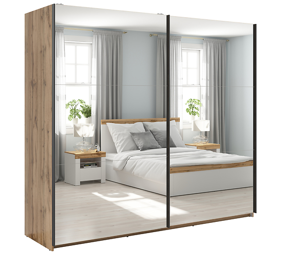 Liugustega riidekapp 220 cm TETRIX tamm wotan/2 peeglit