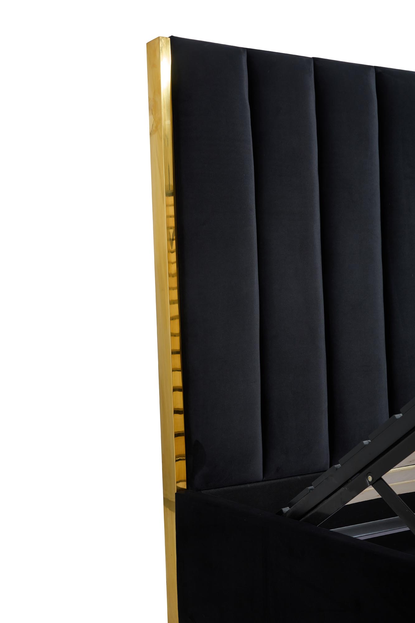 voodi koos voodipesukonteineriga, materjal: sametriie / roostevaba teras, värvid: must/kuld – BLUVEL 19, * ilma madratsita voodi, lisavarustuses madrats POLARIS 160 või SYRIUSZ 160