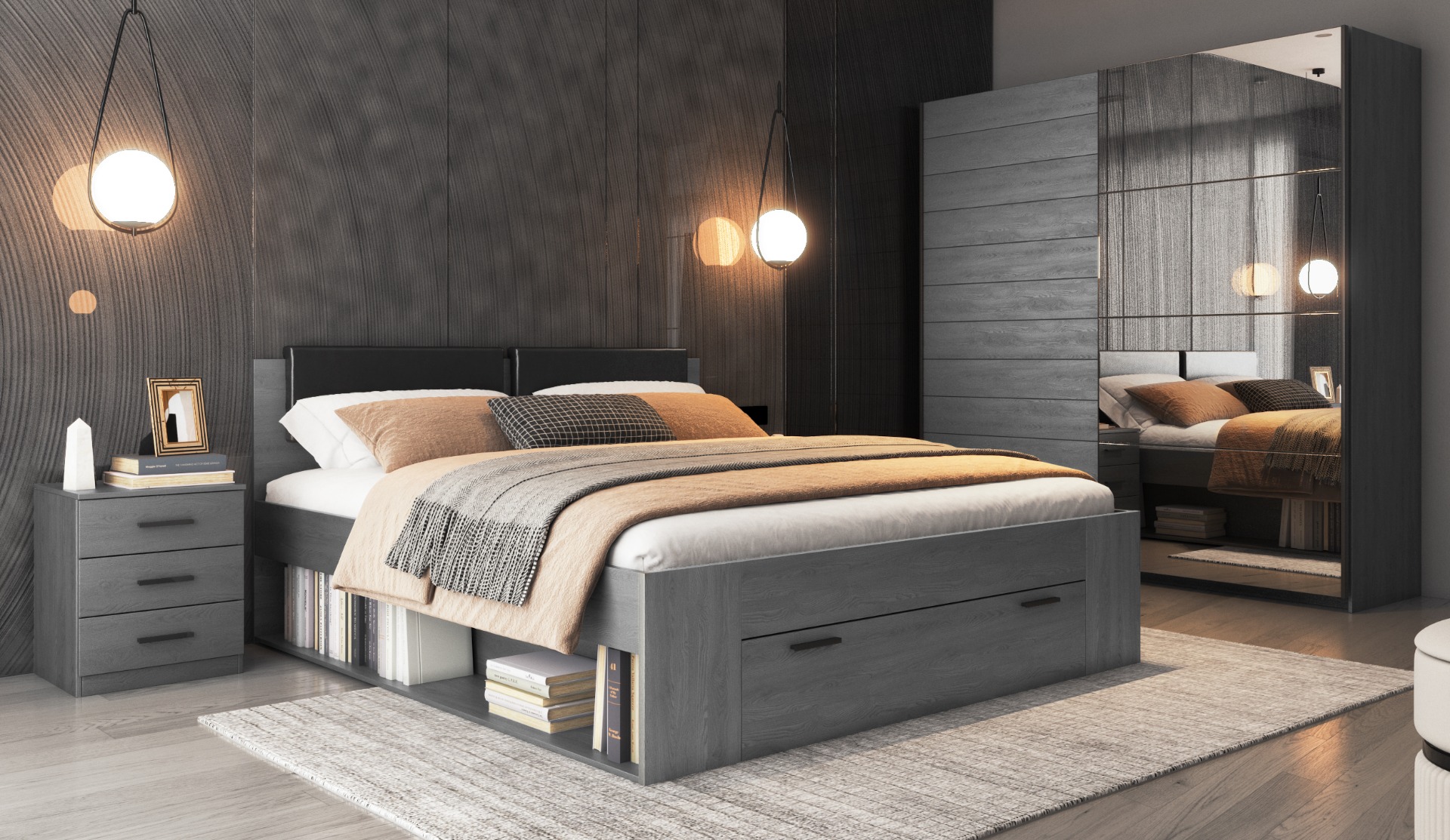 Pesukastiga voodi GALAXY 140 24CBEA50 tamm carbon