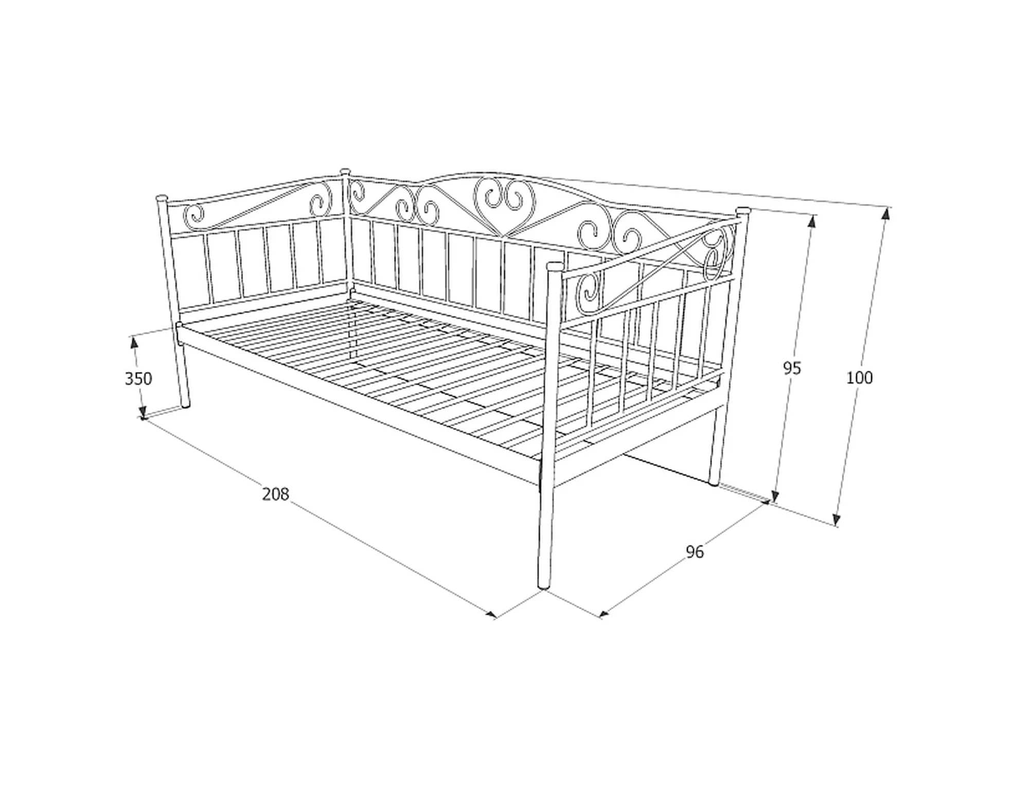 Voodi, materjal: metall, värvus: valge. Komplekti kuulub jäigalt voodiraami külge kinnitatud metallprofiilidest raam. Madratsi suurus: 90x200cm (hind ilma madratsita).