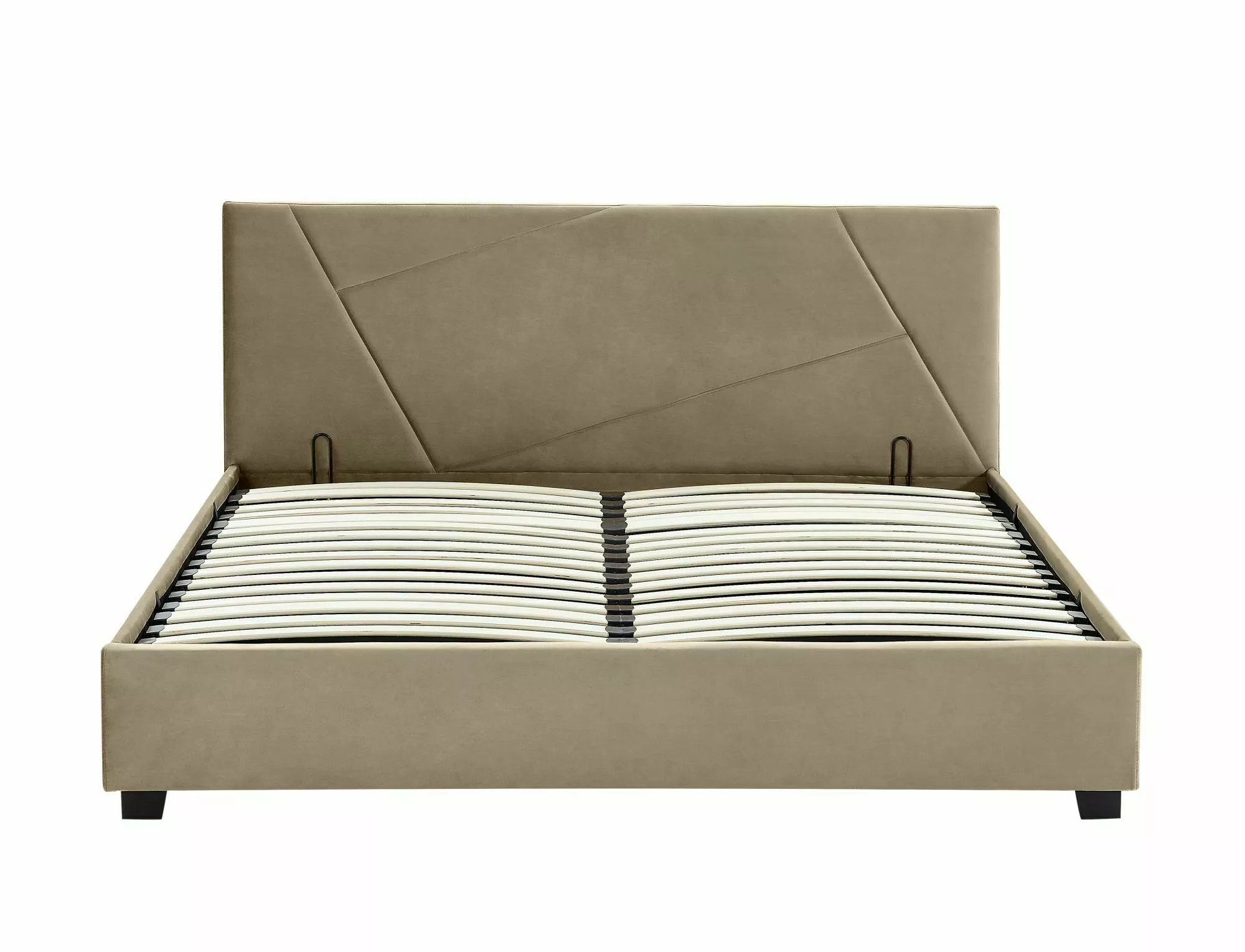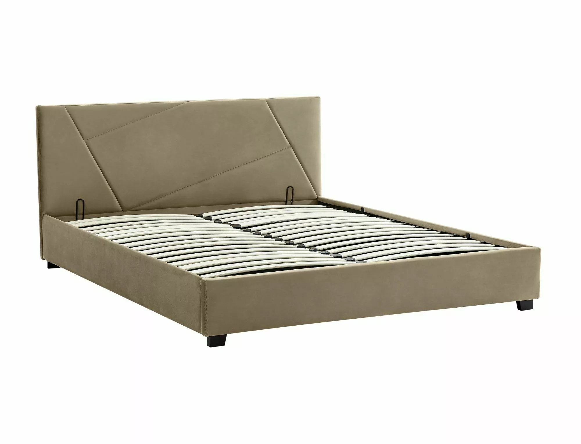 Panipaigaga voodi, Bluvel sametkangas, värvus: 28 beež. Komplekti kuulub painduvatesse käepidemetesse paigaldatud painutatud liistudest raam. Gaasitõstukid. Madratsi suurus 140x200cm (hind ilma madratsita).