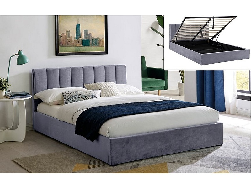 Voodi konteineriga, sametkangas, värvus: hall, polster 192. Voodil on painduvatesse käepidemetesse kinnitatud painutatud liistudest raam. Märkus: pehme põrandaga konteiner. Madratsi suurus 140x200cm (hind ilma madratsita).